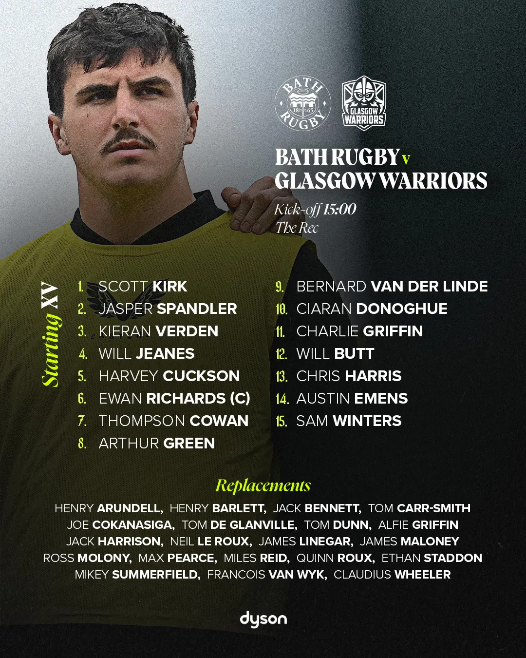 Johann van Graan has named his Bath Rugby squad to play Glasgow Warriors at The Rec on Saturday, kick-off 15:00, as they begin their 2025/26 pre-season schedule.