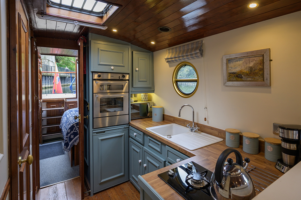 Originally designed as an up market restaurant boat located at Hampton Court on the River Thames, Lady ‘M’ has recently been cruising the waters around Bath as a hospitality / live aboard wide beam barge offered exclusively to guests of the award winning Lady Margaret’s Holiday home in central bath.