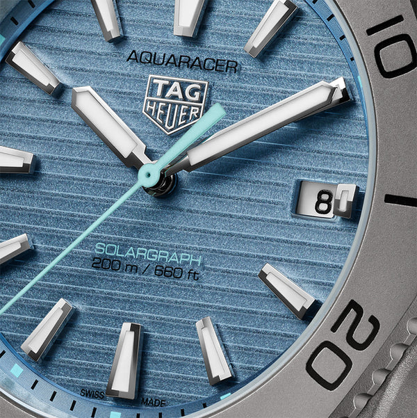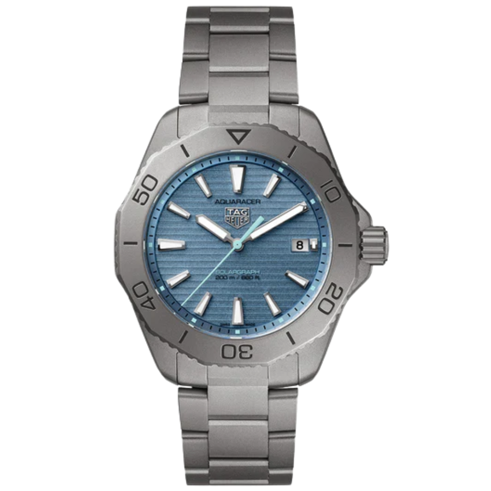 The ultimate versatile tool watch, the 40mm TAG Heuer Aquaracer Professional 200 Solargraph brings together lightweight titanium and a striking ice-blue sunray brushed dial for a look that’s as rugged as it is refined.