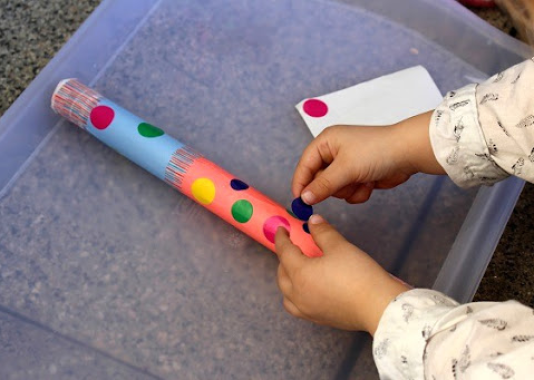 MATERIEL : - 1 rouleau en carton d'essuie tout - 2 ballons de baudruche - Un demi-verre de coquillettes - Peinture - Cure-dents