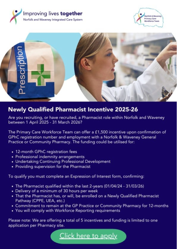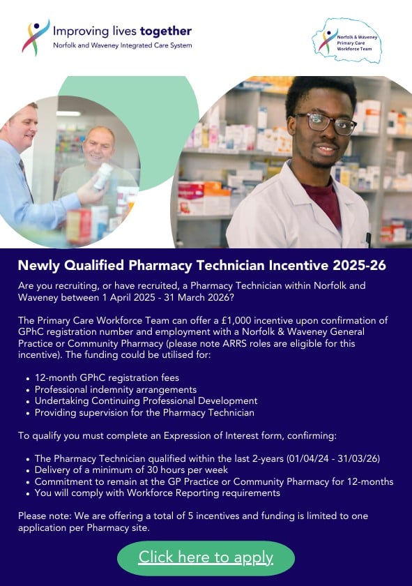 This workshop is a collaboration of N&W ICB – NHSE – CPNS and CPPE to empower Pharmacy Technicians to apply their skills and knowledge confidently and competently when using Patient Group Directions (PGDs) to deliver NHS services using contraception, emergency contraception and smoking cessation services as examples.