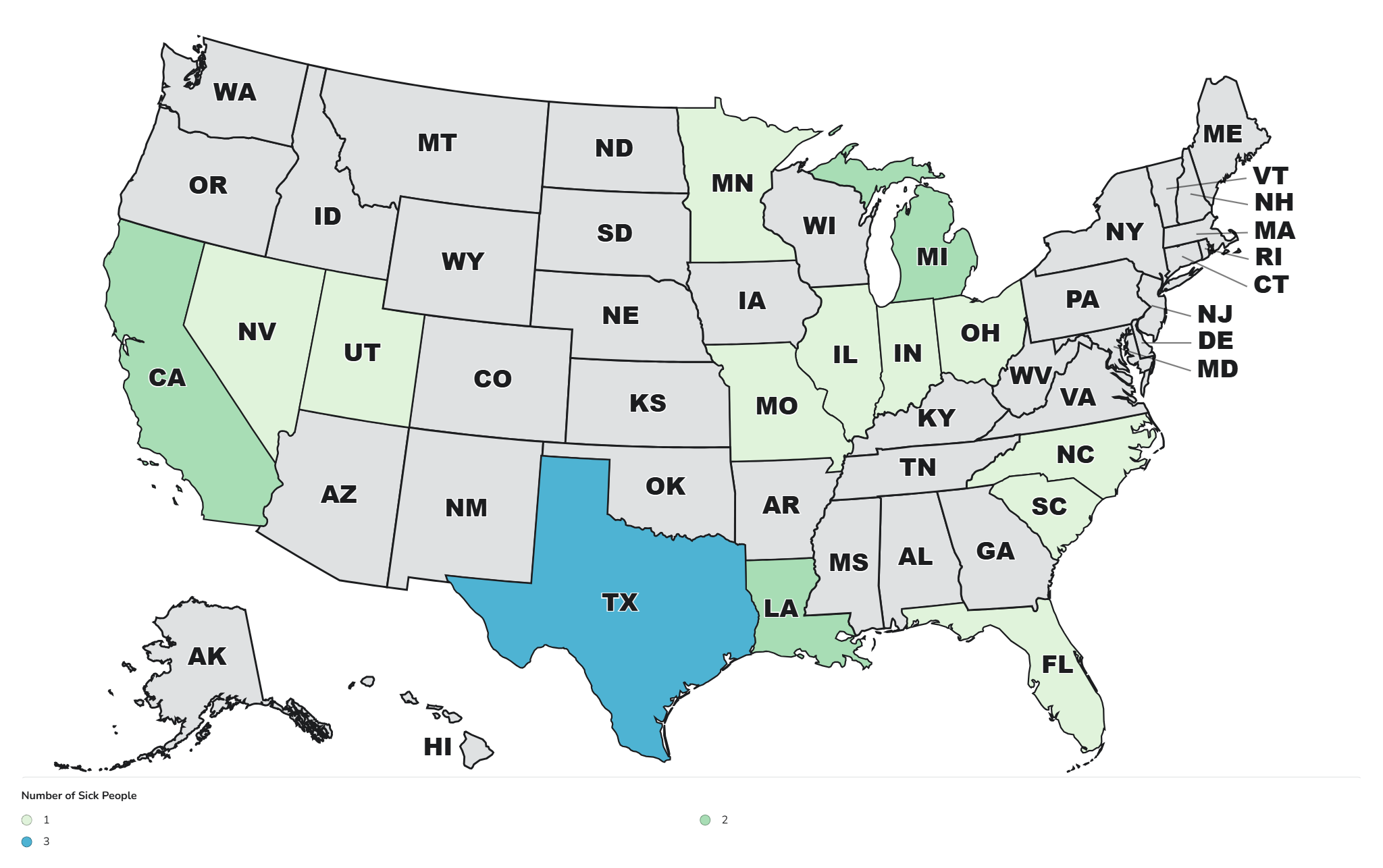 Figure 1. Current Positive Cases of Listeria in Humans in the U.S.